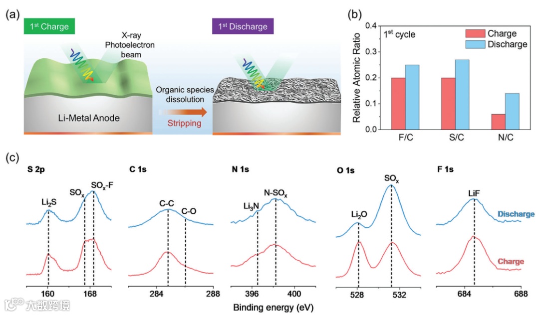 图3. 充/放电态阴离子衍生SEI组成特征。