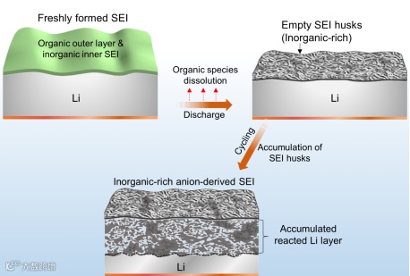 图1. 富无机阴离子衍生SEI的形成过程示意图。