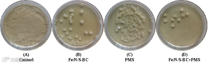 图14 对照组及Fe/N/S-BC、PMS、Fe/N/S-BC+PMS处理后的TRST计数图像。(Cu(II)-TC-TRST三元污染物)