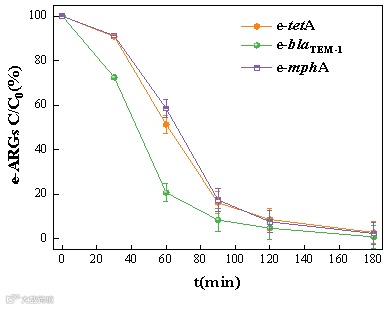 图15 包括TRST中tetA、blaTEM-1和mphA基因的细胞外抗生素耐药基因(e-ARGs)的降解效率