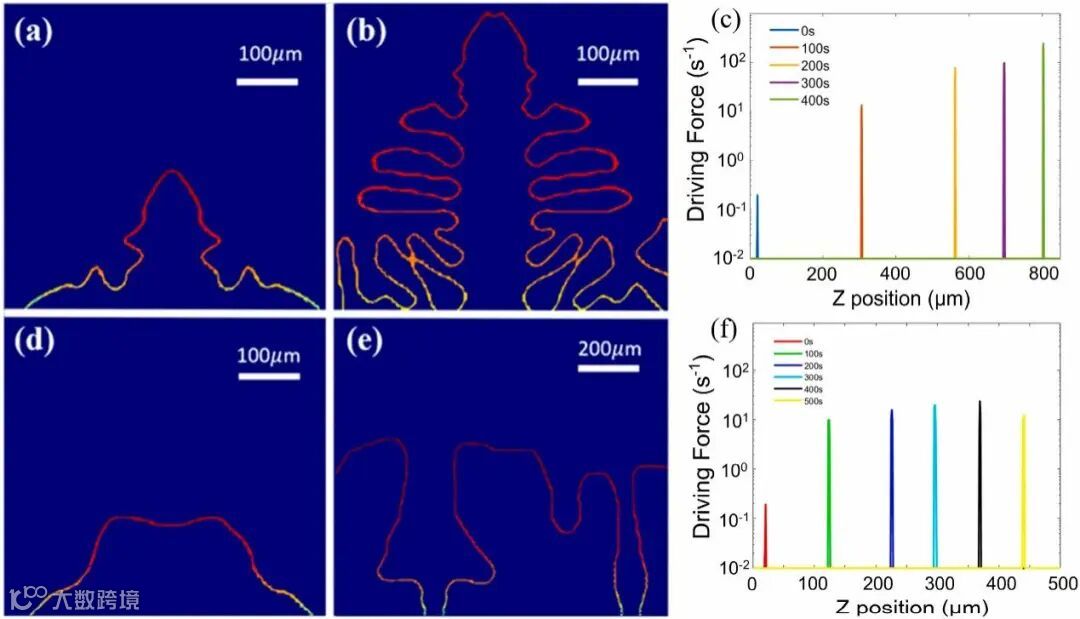 图2. 锂/镁枝晶在不同时间下的驱动力分布