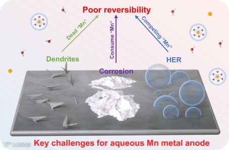 图2. 水系锰金属负极的关键问题。