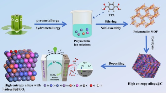 图1. 回收废旧电池制备高熵合金流程示意图。