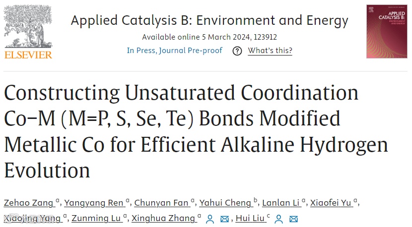 构建不饱和配位Co−M(M=P,S,Se,Te)键改性的金属Co用于高效碱性析氢反应