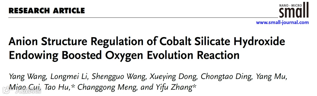 近日,大连理工大学的孟长功教授、胡涛教授、张依福副教授课题组在国际知名期刊Small上发表题为“Anion Structure Regulation of Cobalt Silicate Hydroxide Endowing Boosted Oxygen Evolution Reaction”的观点文章。该观点文章通过调节阴离子结构的方式提升羟基硅酸钴的OER活性,强调了阴离子本征结构对于材料本征性能的重要性,并且明确了阴离子结构(即配体结构)对于活性中心电子结构及各类性质的重要性。