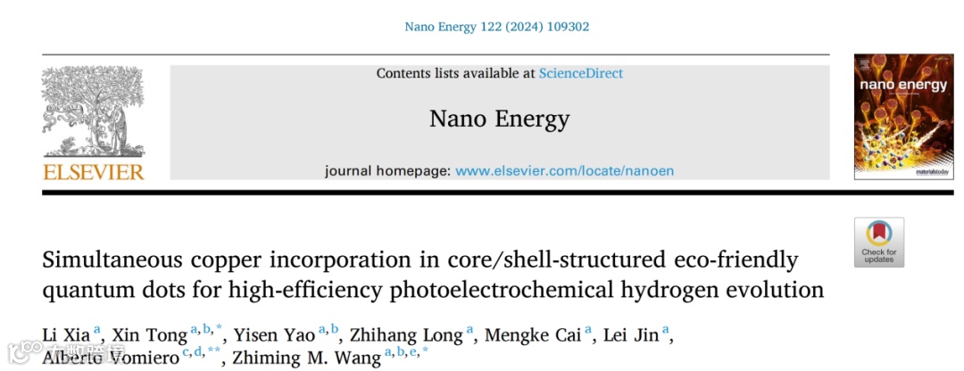 核壳结构环保型量子点中同步引入铜元素实现高效光电化学析氢
