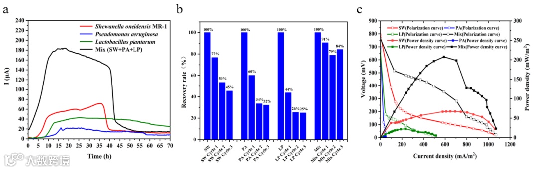 图三:利用联盟系统增强了MFC的发电能力,扩展了MFC的底物碳谱