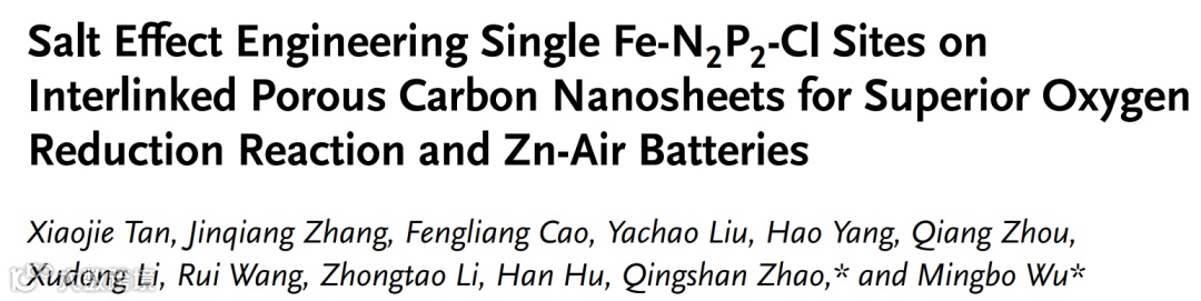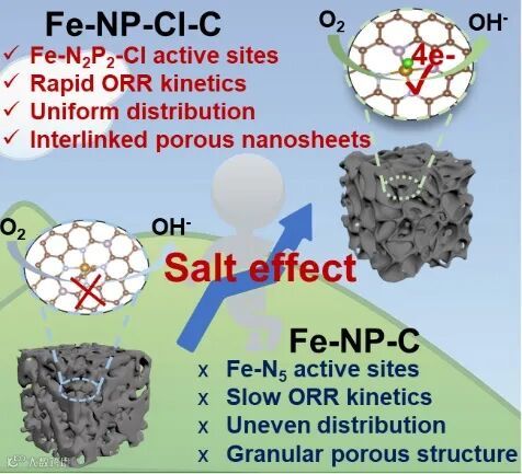 利用盐效应诱导实现高效单原子催化剂微观形貌和配位结构的精准构筑,应用于高效氧还原反应及锌-空气电池
