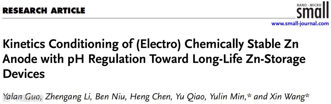 pH调控(电)化学稳定的锌负极的动力学条件实现长寿命的锌储能器件