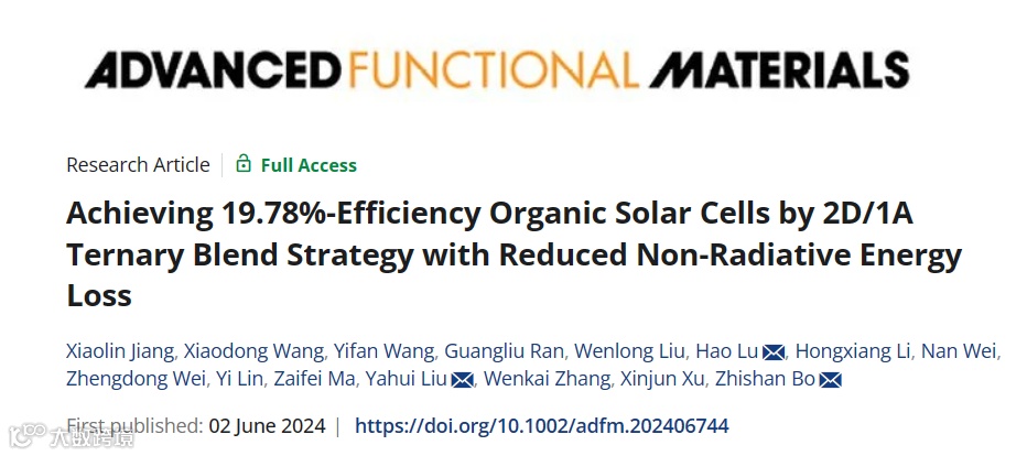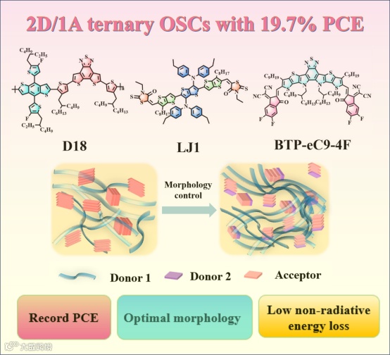 通过降低非辐射能量损耗的 2D/1A 三元混合策略实现 19.78% 效率的有机太阳能电池