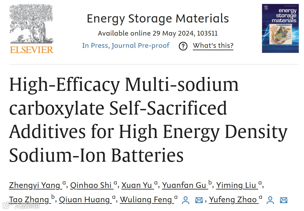高效多羧酸钠自牺牲添加剂实现高能量密度钠离子电池
