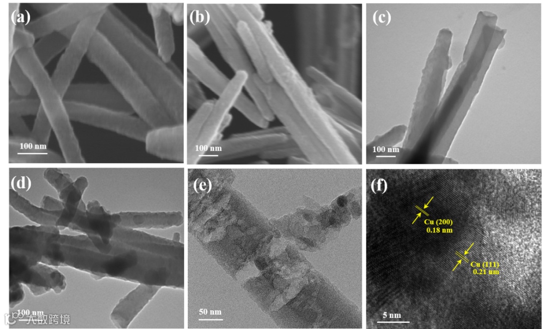 本文报道了一种由氮掺杂多孔碳纳米纤维组成的高效ORR电催化剂,该电催化剂(Cu0.4/NPC)负载有Cu基活性位点,这是通过预先设计的COP前驱体的配位-热解途径实现的。Cu0.4/NPC呈现出碳纳米纤维形貌结构,在Cu0.4/NPC的HRTEM中可以清楚地观察到Cu的(111)和(200)面,晶格条纹分别为0.21和0.18 nm,表示纳米颗粒是Cu纳米团簇。此外,同步辐射测试进一步证实了Cu0.4/NPC中存在Cu纳米团簇和Cu-Nx位点。