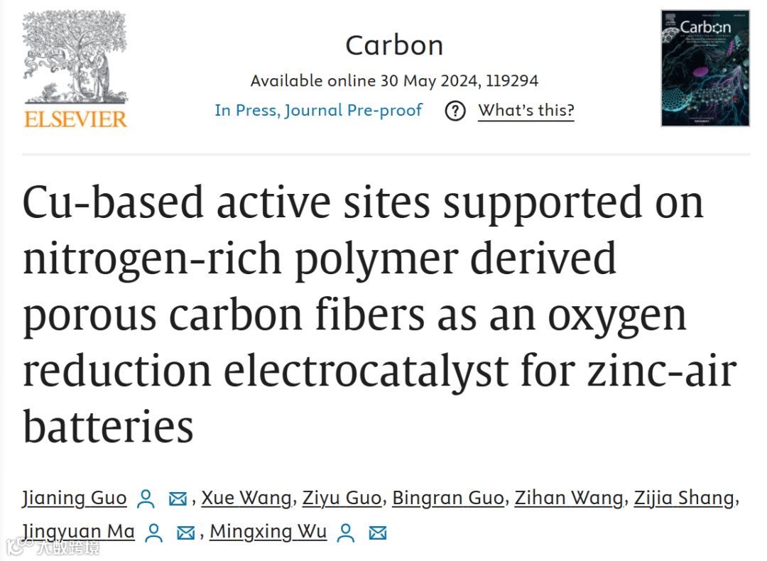 近日,河北师范大学的郭佳宁、马婧媛和武明星及其课题组,在知名期刊Carbon上发表题为“Cu-based active sites supported on nitrogen-rich polymer derived porous carbon fibers as an oxygen reduction electrocatalyst for zinc-air batteries”的文章。作者等人通过预先设计共价有机聚合物(COP)前驱体的配位-热解途径合成了Cu基活性位点负载氮掺杂碳纤维材料。COP衍生的氮掺杂碳纳米纤维具有多孔结构,有利于快速的质量/电子传递,从而保证了铜基活性位点的强牢固性和高反应活性。该材料作为空气阴极催化剂所组装的液态锌空气电池和固态锌空气电池均表现出了优异的性能。此外,这项工作为设计具有高密度和最大限度利用活性位点的先进ORR催化剂提供了一种可行办法。