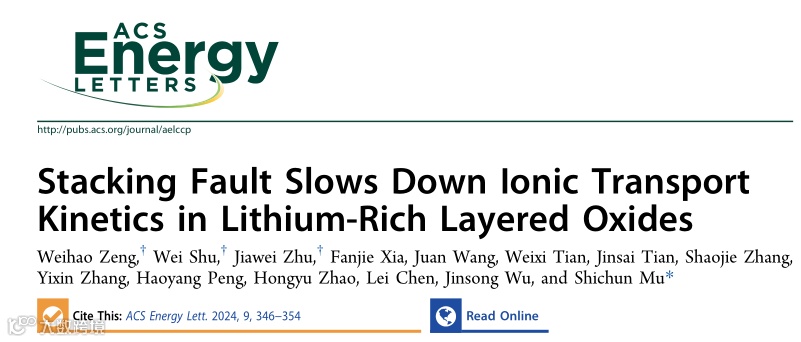 近日,来自武汉理工大学的木士春教授在国际知名期刊ACS Energy Letters上发表题为“Stacking Fault Slows Down Ionic Transport Kinetics in Lithium-Rich Layered Oxides”的文章。该观点文章揭示了堆垛层错缺陷是导致富锂锰基层状氧化物中锂离子扩散动力学迟缓的主要影响因素之一,为破译层状正极材料中堆垛层错缺陷的作用提供了深入的见解;同时,该文章亦证明了调控缺陷浓度对改善锂离子扩散能力的有效性。