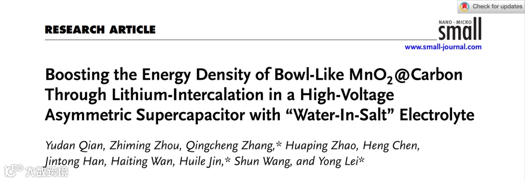 在“盐包水”电解质的高电压不对称超级电容器中通过嵌锂作用提升MnO2@碗状碳的能量密度