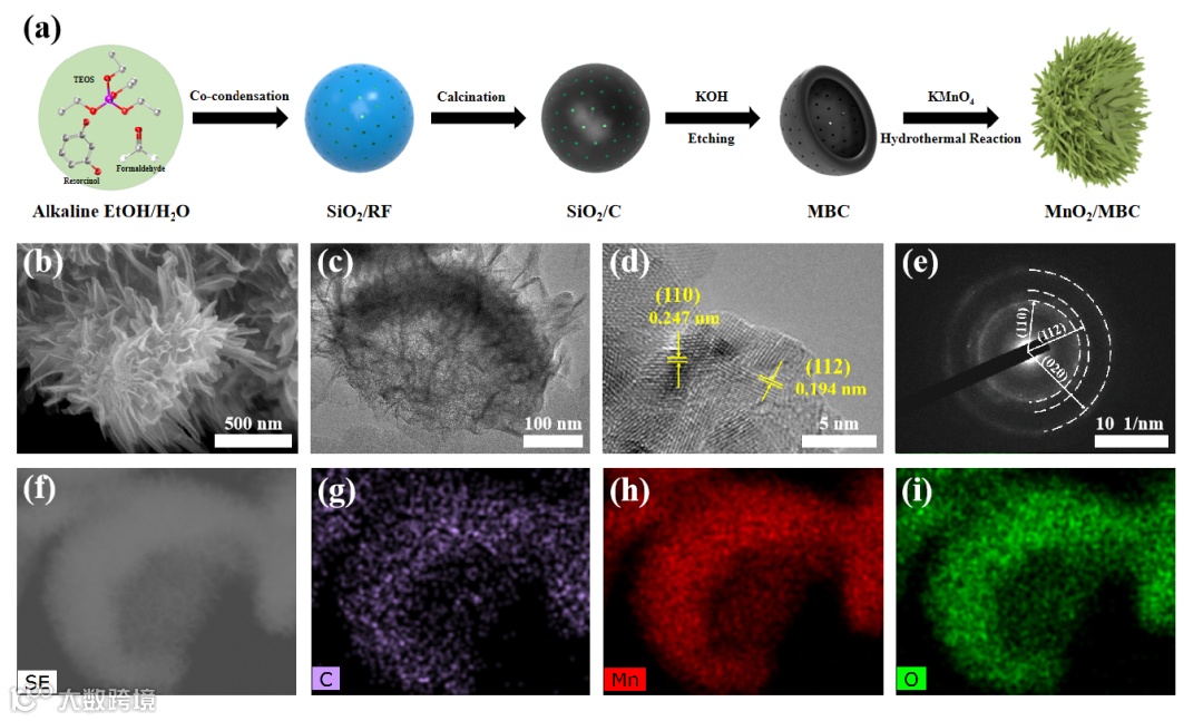 图1. MnO2/MBC合成示意图和形貌结构表征。