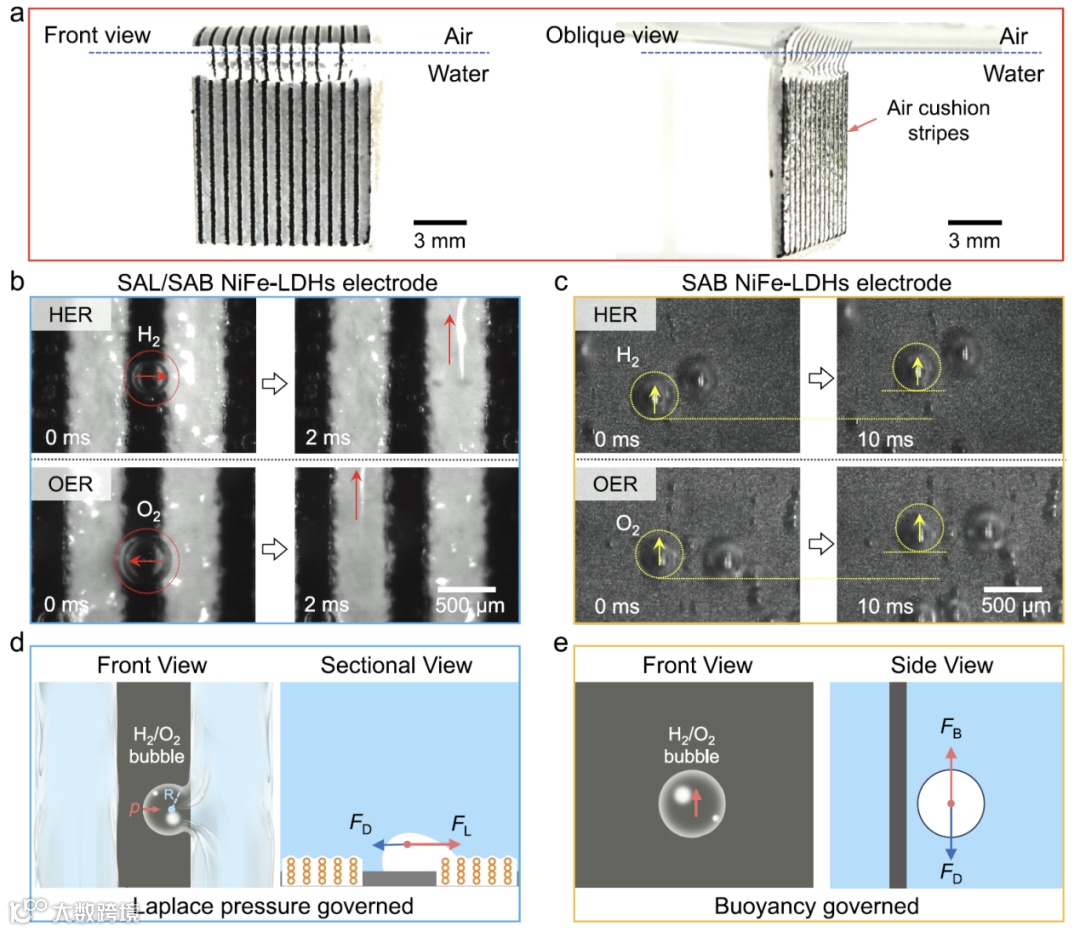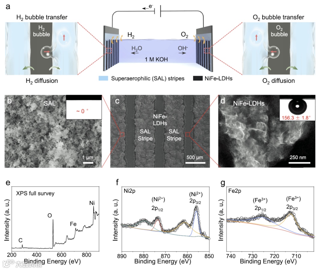 图1. 超亲气/超疏气NiFe-LDHs电极。