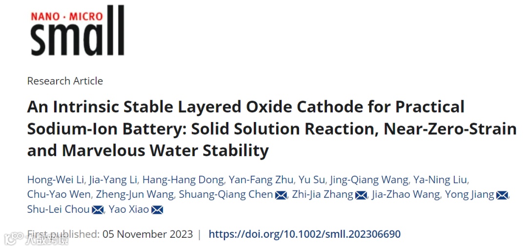 近日,在温州大学碳中和技术创新研究院平台支持和侴术雷教授的悉心指导下,温州大学肖遥教授团队联合天津工业大学姜勇教授团队在国际权威期刊small上发表题为“An Intrinsic Stable Layered Oxide Cathode for Practical Sodium-Ion Battery: Solid Solution Reaction, Near-Zero-Strain and Marvelous Water Stability”的文章。该论文探讨了以水系粘结剂取代有机粘结剂用于钠离子电池层状氧化物正极材料的可行性。通过对传统层状氧化物正极材料进行结构优化,构建出本征结构稳定,完全固溶体反应,零应力应变的材料。从而在保持材料优异电化学性能的基础上,成功的将水系粘结剂应用于层状氧化物正极材料的电极制备。该实验为层状氧化物钠离子电池正极材料应用水系粘结剂的可行性提供了参考。