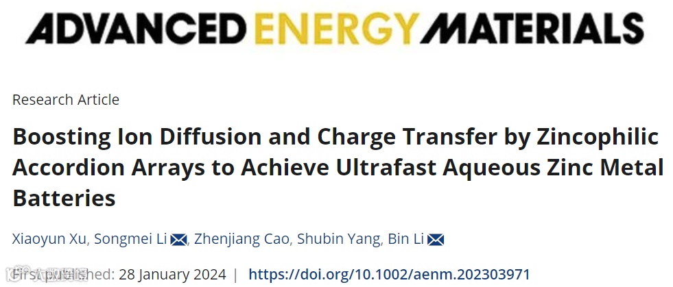 通过亲锌手风琴阵列促进离子扩散和电荷转移来实现超快水系锌金属电池