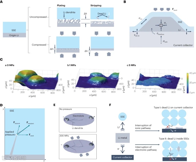 外部压力与电化学的耦合可用于设计一系列耐压和低压SSLB,适用于各种操作条件下的广泛应用。通过综合考虑化学、电化学、几何、材料力学和界面行为,在不久的将来,这一有吸引力的领域有望取得更多进展。