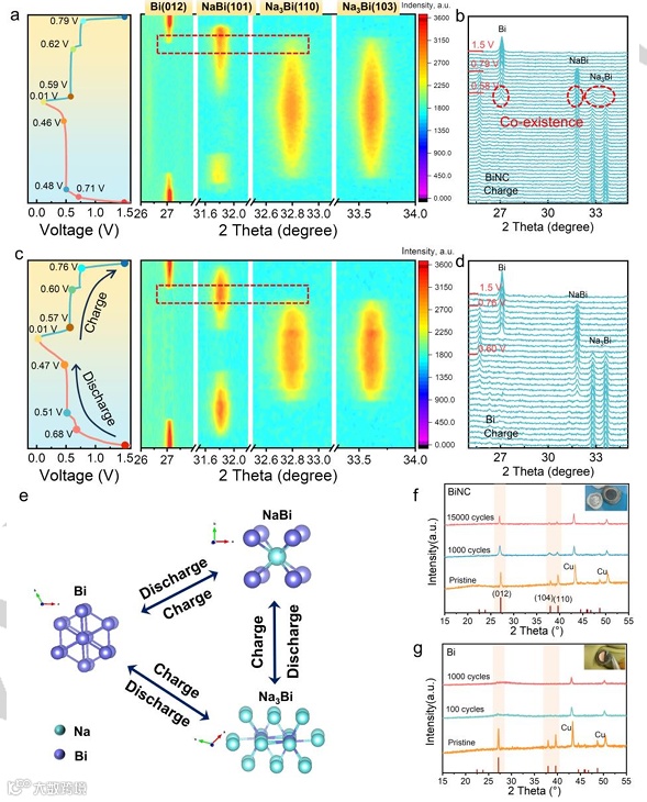 图6. 从原子层面探究BiNC的钠储存行为特征。