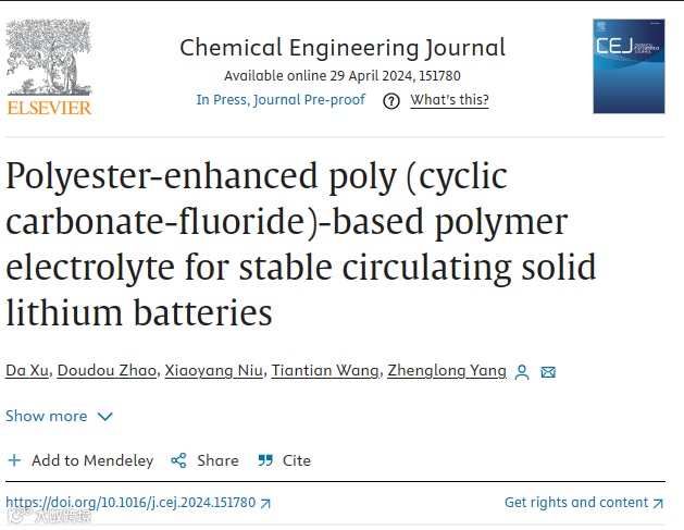 用于稳定循环固态锂离子电池的聚酯增强聚(环状碳酸酯-氟化物)基聚合物电解质的研究