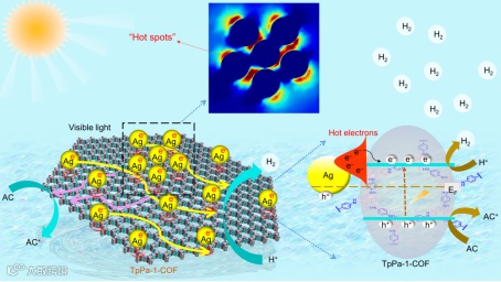 图1. 利用Ag NPs的LSPR效应提高TpPa-1-COF光催化产氢活性机理示意图