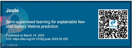 2024年3月14日,复旦大学陶俊团队、上海交通大学万佳雨团队、昆山杜克大学李昕团队等联合在Cell Press细胞出版社旗下期刊Joule上发表了题为“Semi-supervised learning for explainable few-shot battery lifetime prediction”的研究论文。由于锂电池具有能量密度高、使用寿命长等优点,当前已被广泛应用于电动汽车、手机等各个领域,在现代社会中起着至关重要的作用。为了保证电池系统的安全可持续运行,人们需要对锂电池寿命进行准确的预测,以便有效管理其健康状态。传统的基于物理和半经验模型的预测方法易受误差影响,精度十分有限。近年来,尽管数据驱动的寿命预测方法在技术上取得了显著进步,但由于缺乏足够多的有标签数据,其模型的准确性依然受到严重制约。该论文提出了使用半监督学习方法,实现了小样本下电池状态的准确估计。该方法有效利用了易获取的无标签数据,在提升模型预测精度的同时,极大的节约了时间成本和测试成本。此外,文章中还从对预测精度和可解释性两方面揭示了无标签数据在模型训练过程中起到的关键作用,展示了数据洞察与物理规律的内在联系。论文第一作者为郭南麟,陈思慧;共同通讯作者为陶俊,万佳雨,李昕。