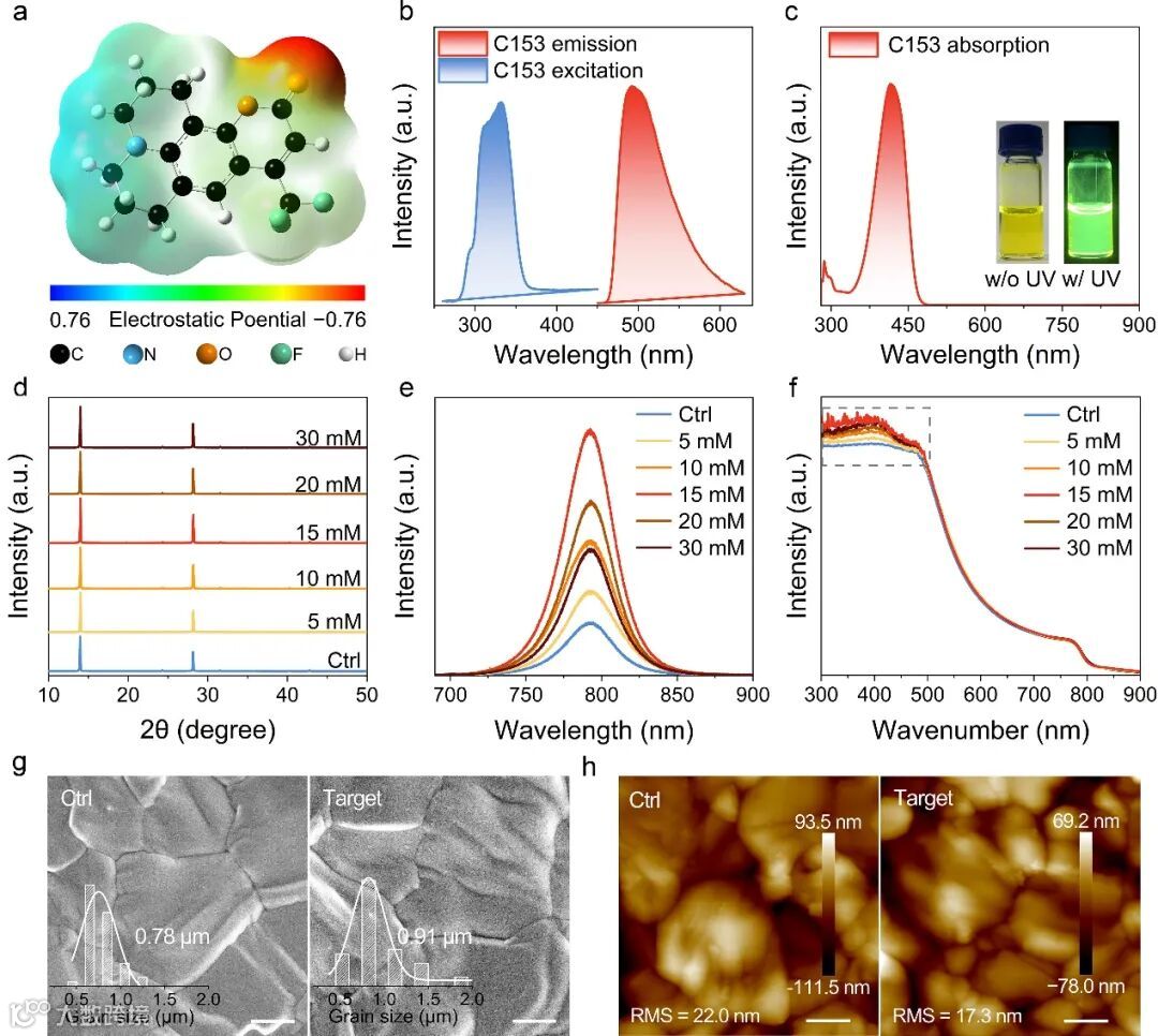 要点一:C153分子下转换效应增强光吸收、调控结晶质量以及改善界面接触