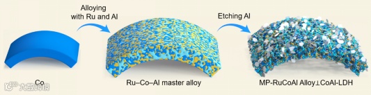 图1. MP-RuCoAl Alloy⊥CoAl-LDH的制备过程示意图。