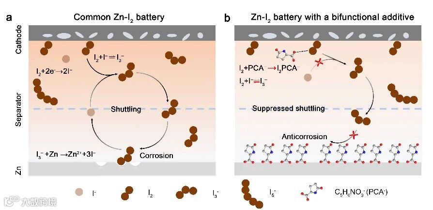 一种双功能添加剂诱导与碘的优先配位实现超长寿命锌碘电池。