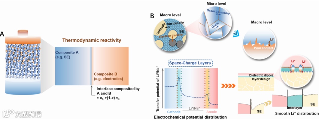 较高的界面电阻在很大程度上是由刚性接触引起的无效离子传导和电化学势差引起的界面副反应产生的,尽管聚合物电解质在一定程度上可以解决此问题,但是他们的室温下电化学不稳定性和低离子电导依然有待解决。构建理想的固-固界面需要物理,化学和机械性能之间的协同设计。此外,还需平衡包括晶格动力学,一致的离子迁移以及SSE本身穿越晶界的巨大能垒等几个关键问题,这对于设计具有高离子电导的离子导体至关重要,并且这仍然是显著的挑战。