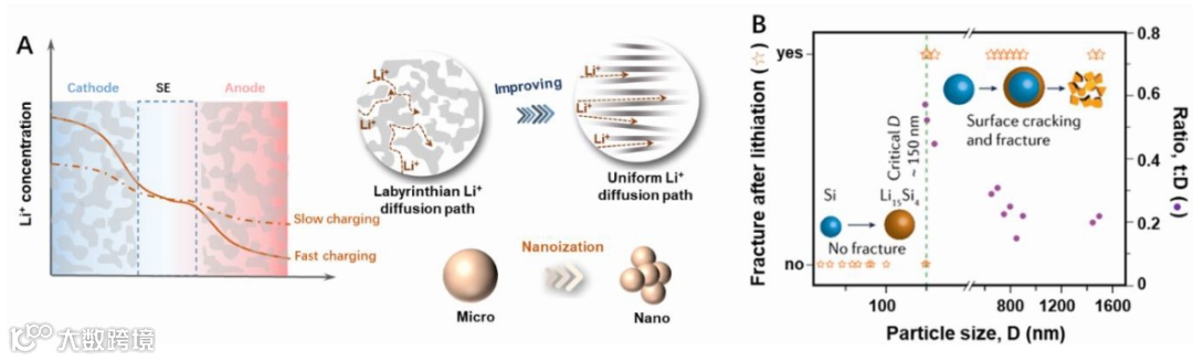 随后,作者继续讨论了固态电池中的关键问题:界面问题,总结了固态电池中存在的界面热动力学活性以及界面空间电荷分布在固态电池中的关键作用。并且提出了关于解决上诉问题的可行方案。(图5)于此同时,鉴于未来固态电池应用背景对快充电池的需求,作者探讨了关于如何实现快充的方案。提出在固态电池的电极制备过程中需要关注有序离子通道的设计问题,以及活性材料纳米化的问题。(图6)
