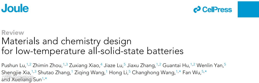 近日,来自宁波东方理工大学(暂名)的孙学良院士、王长虹助理教授与中国科学院物理研究所吴凡研究员合作,在国际知名期刊Joule上发表题为“Materials and chemistry design for low-temperature all-solid-state batteries”的综述文章。该综述考察了ASSBs的微观动力学过程,包括固态电解质(SEs)内Li离子的迁移、界面电荷转移和电极扩散,概述了低温ASSBs在SEs、界面和电极方面面临的关键挑战和特定要求。基于这些见解,回顾了一系列面向高性能低温ASSBs的材料和化学设计策略。最后,提出了未来改善低温ASSBs性能的潜在研究方向,旨在提供对ASSBs低温性能的深入理解和关键见解,以便提升其低温性能。