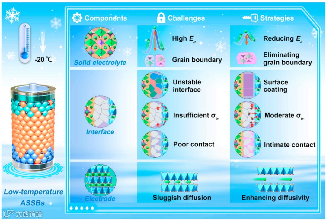 图1. 低温ASSBs的关键挑战和有效策略总结。