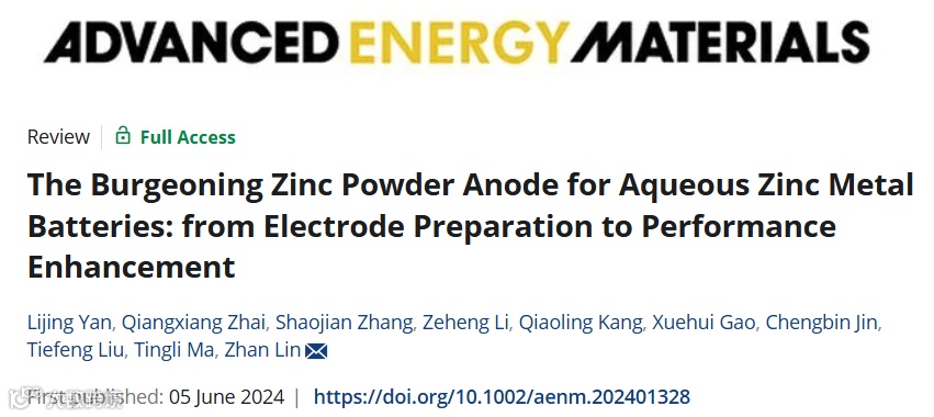 近日,广东工业大学的林展教授与中国计量大学严立京博士合作,在国际知名期刊Advanced Energy Materials上发表题为“The Burgeoning Zinc Powder Anode for Aqueous Zinc Metal Batteries: from Electrode Preparation to Performance Enhancement”的综述文章。该综述文章分析了锌粉负极的电极制备与性能提升之间的联系,同时汇总了近期锌粉负极的研究进展,并提出了相应的展望。