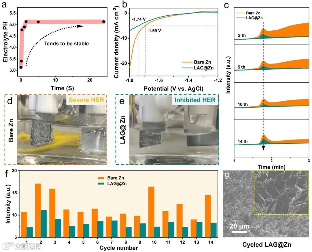 图3. LAG@Zn负极析氢抑制性能的探究。