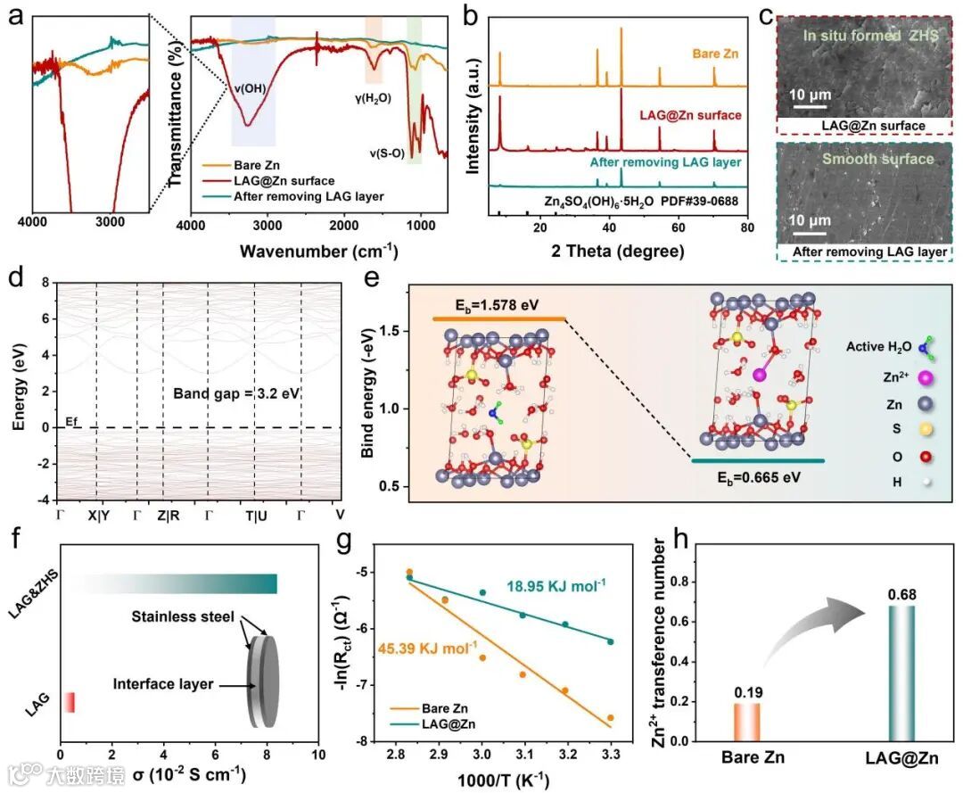 图2. LAG@Zn负极耐腐蚀性能和迁移动力学的研究。