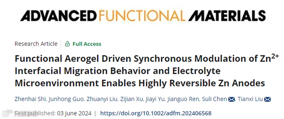 “Functional Aerogel Driven Synchronous Modulation of Zn2+ Interfacial Migration Behavior and Electrolyte Microenvironment Enables Highly Reversible Zn Anodes”