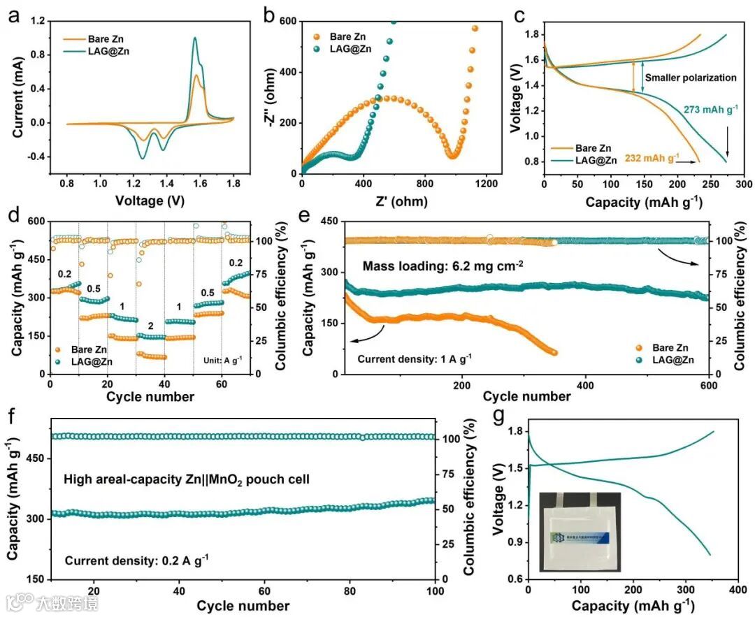 图6. LAG@Zn||MnO2全电池电化学性能评估。