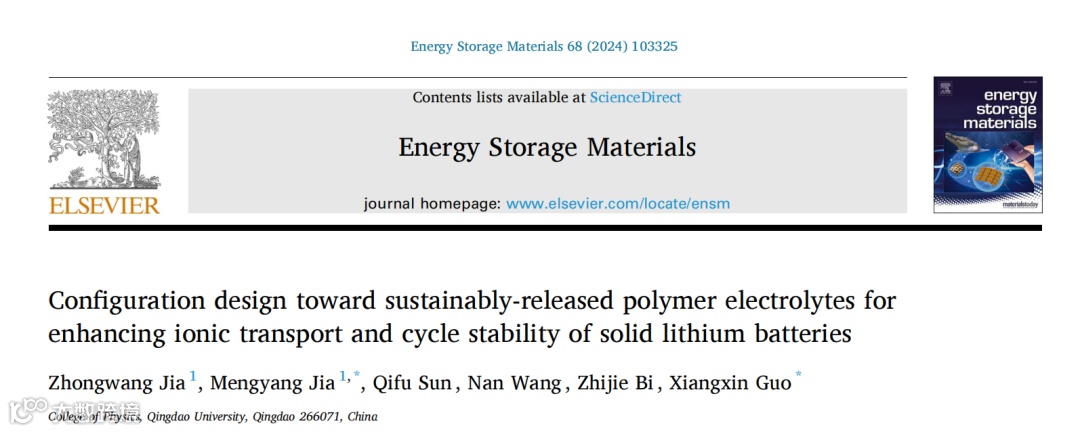 Configuration Design toward Sustainably-Released Polymer Electrolytes for Enhancing Ionic Transport and Cycle Stability of Solid Lithium Batteries, Energy Storage Materials 2024, 68, 103325.