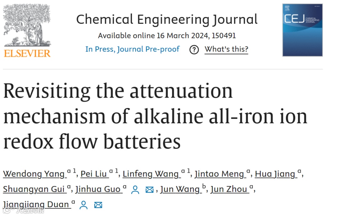 Wendong Yang, Pei Liu, Linfeng Wang, Jintao Meng, Hua Jiang, Shuangyan Gui, Jinhua Guo, Jun Wang, Jun Zhou, Jiangjiang Duan, Revisiting the attenuation mechanism of alkaline all-iron ion redox flow batteries, Chemical Engineering Journal, 2024.