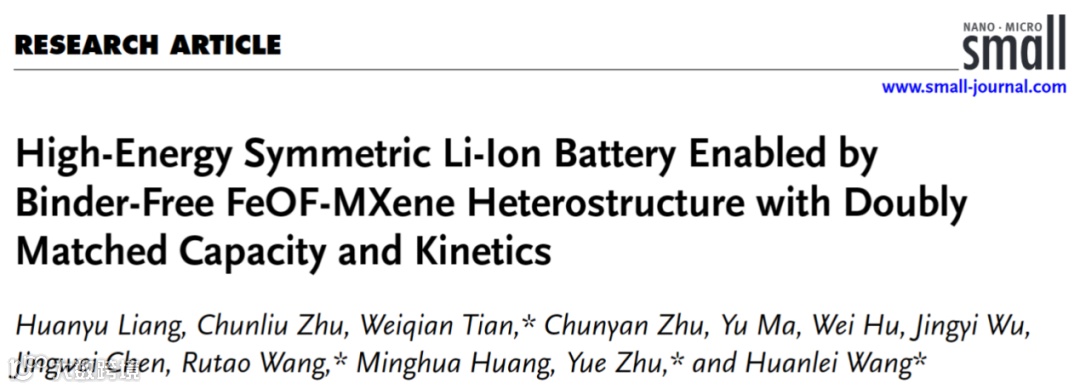 容量动力学双匹配的无粘结剂FeOF-MXene异质结构助力高性能对称锂离子电池