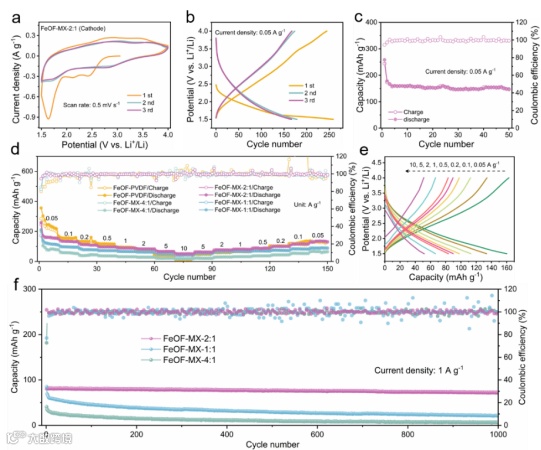 要点四:FeOF-MX正极的锂存储性能