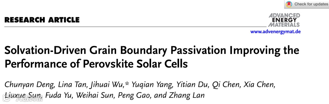 溶剂化效应驱动晶界钝化提高钙钛矿太阳能电池性能