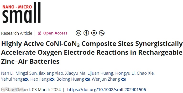 高活性CoNi-CoN3复合位点协同加速可充电锌-空气电池中的氧电极反应