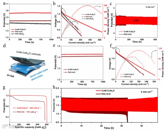 图4. 基于CoNi-CoN3/C的ZABs性能
