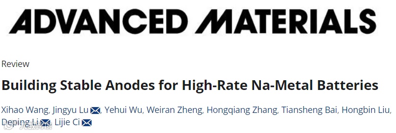 Xihao Wang, Jingyu Lu*, Yehui Wu, Weiran Zheng, Hongqiang Zhang, Tiansheng Bai, Hongbin Liu, Deping Li*, Lijie Ci*. Building Stable Anodes for High-Rate Na-Metal Batteries. Advanced Materials, 2024,