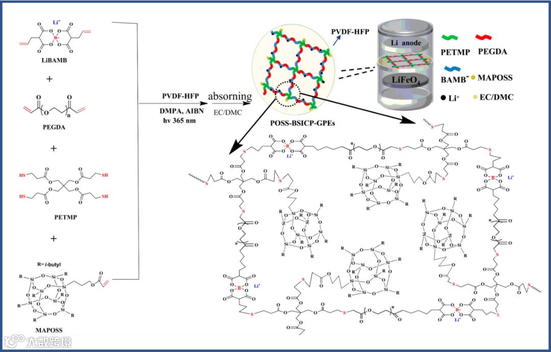 要点一:三维交联含POSS的硼酸盐单离子导体的有机-无机杂化凝胶电解质高的锂离子迁移数和电化学稳定性