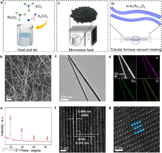 图1. m-Ir0.91Ru0.09O2-δ的合成原理图及表征。